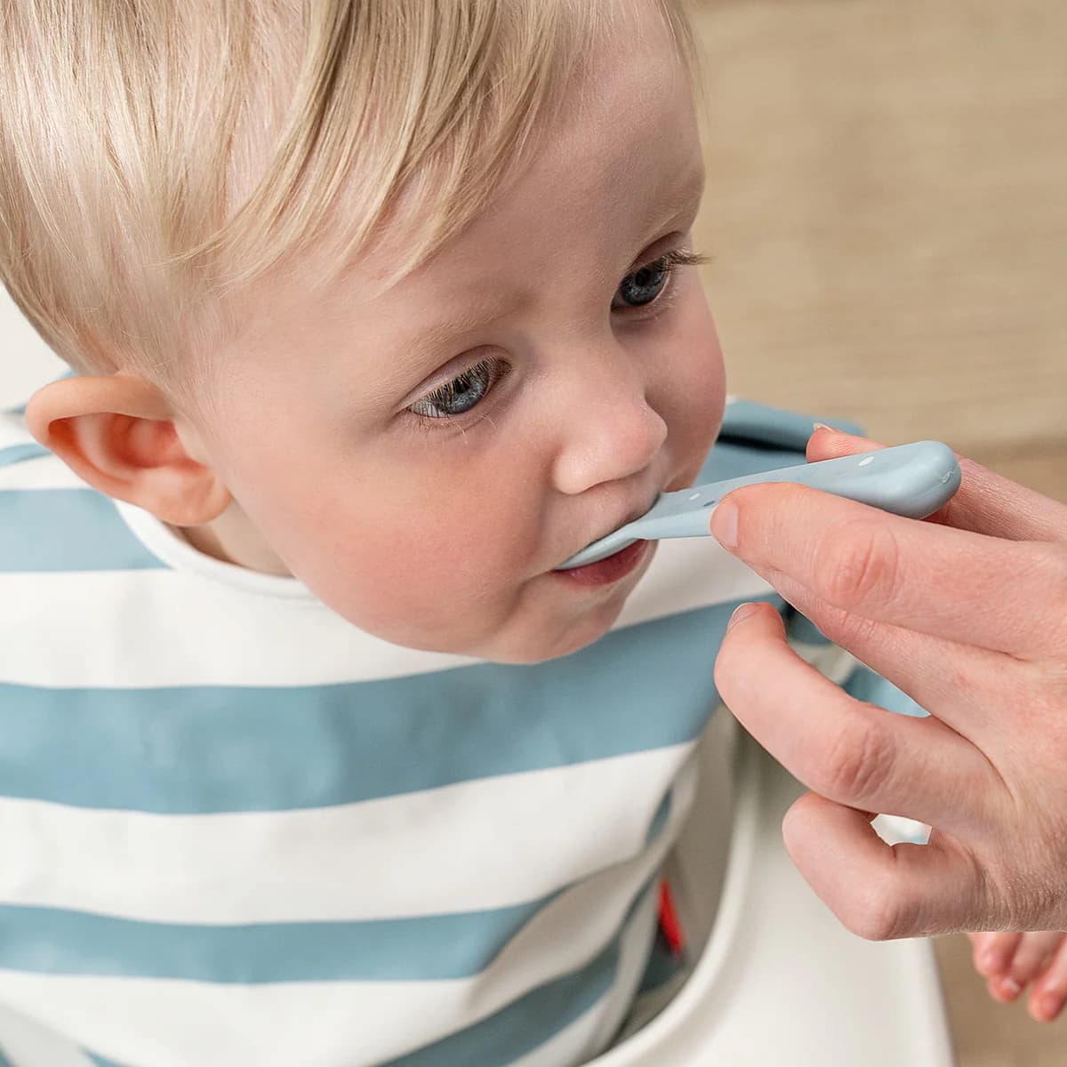 Þessi hnífapör eru sérstaklega hönnuð fyrir litlar hendur sem eru að læra að borða sjálfar. Mjúkar og rúnnaðar brúnir gera þau bæði örugg og þægileg í notkun.