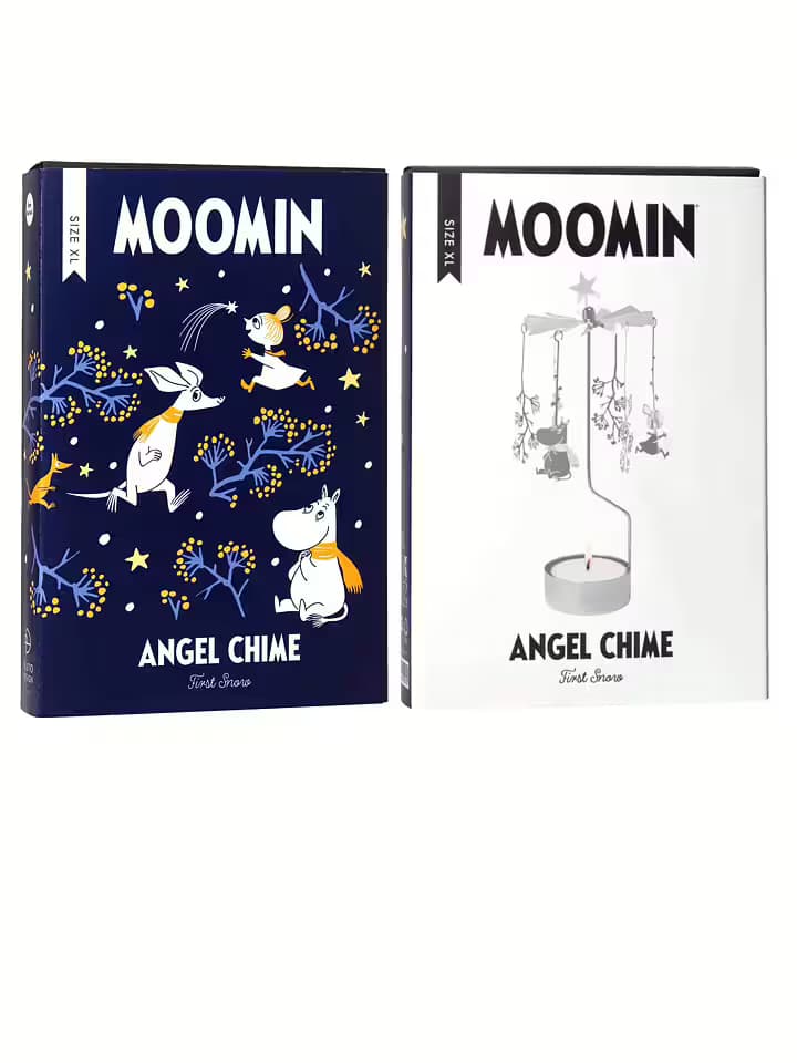 Englaspil skreytt með Múmínálfunum í fyrsta snjónum.