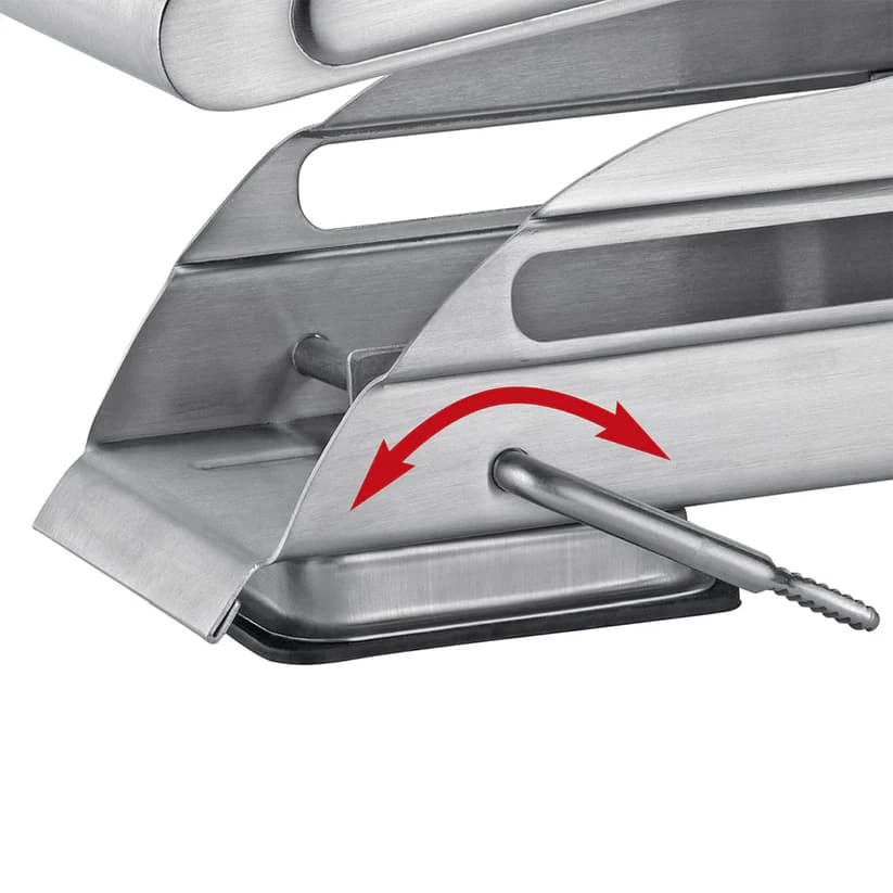 Hann er úr ryðfríu stáli og stendur tryggilega á sterkum fótum.