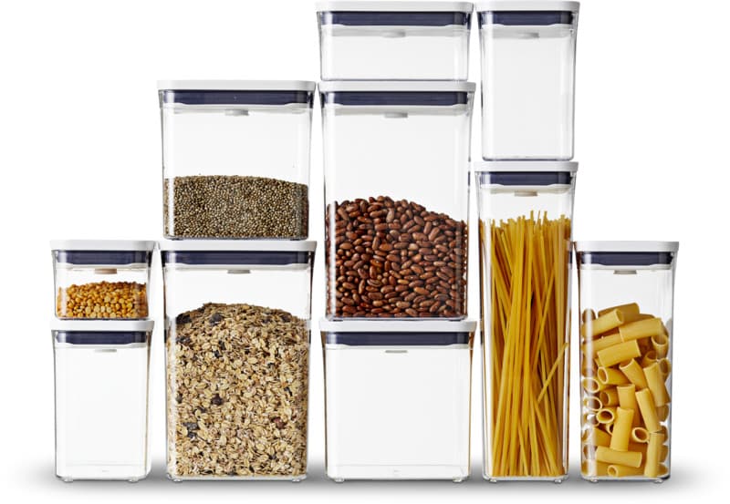 POP geymlsluboxin frá OXO eru draumur þeirra sem vilja hafa allt í röð og reglu í kringum sig.  Boxin koma í mismunandi stærðum og hæðum, en eru þó alltaf þannig að hægt sé að raða þeim saman til að þau myndi þægilegt og fallegt skipulag.