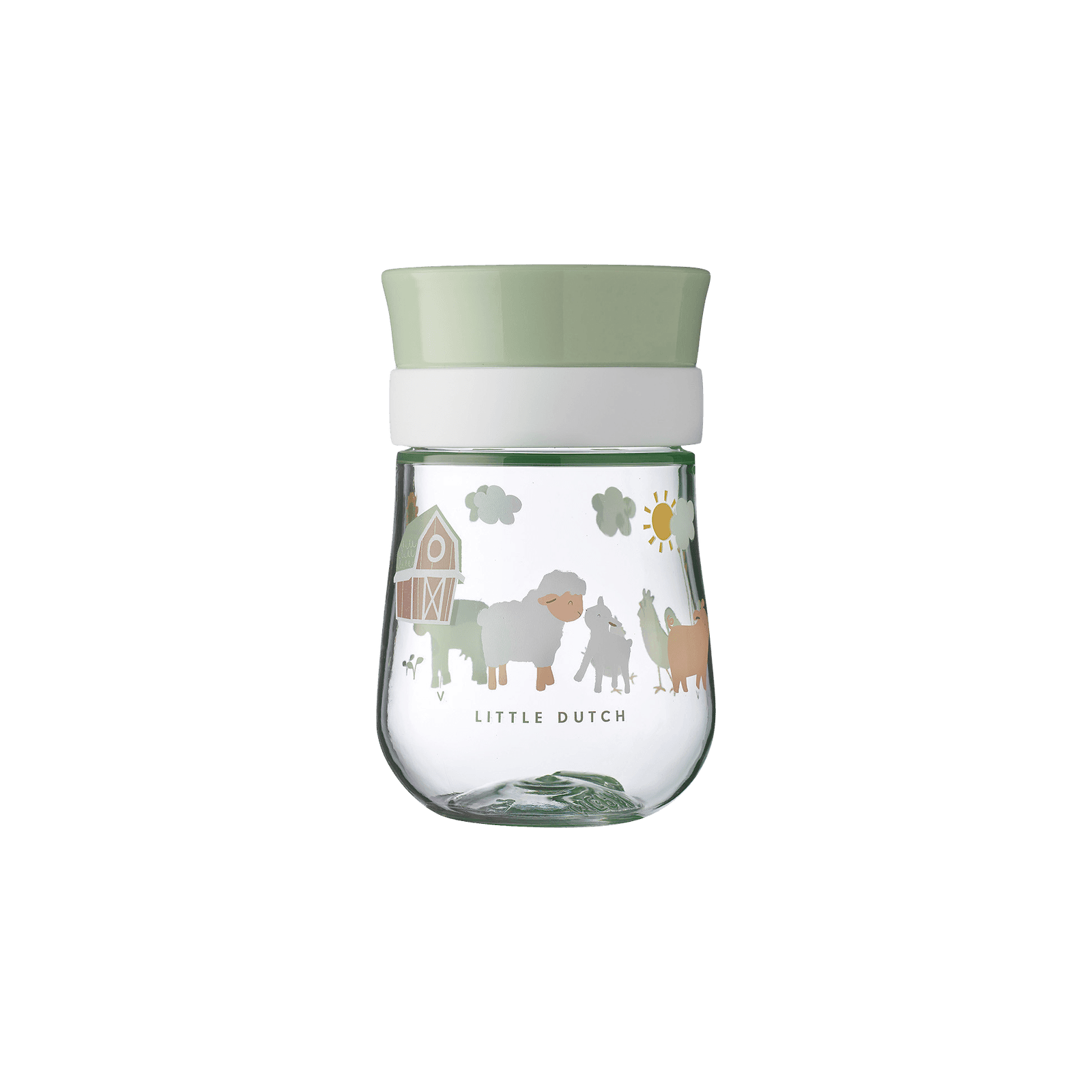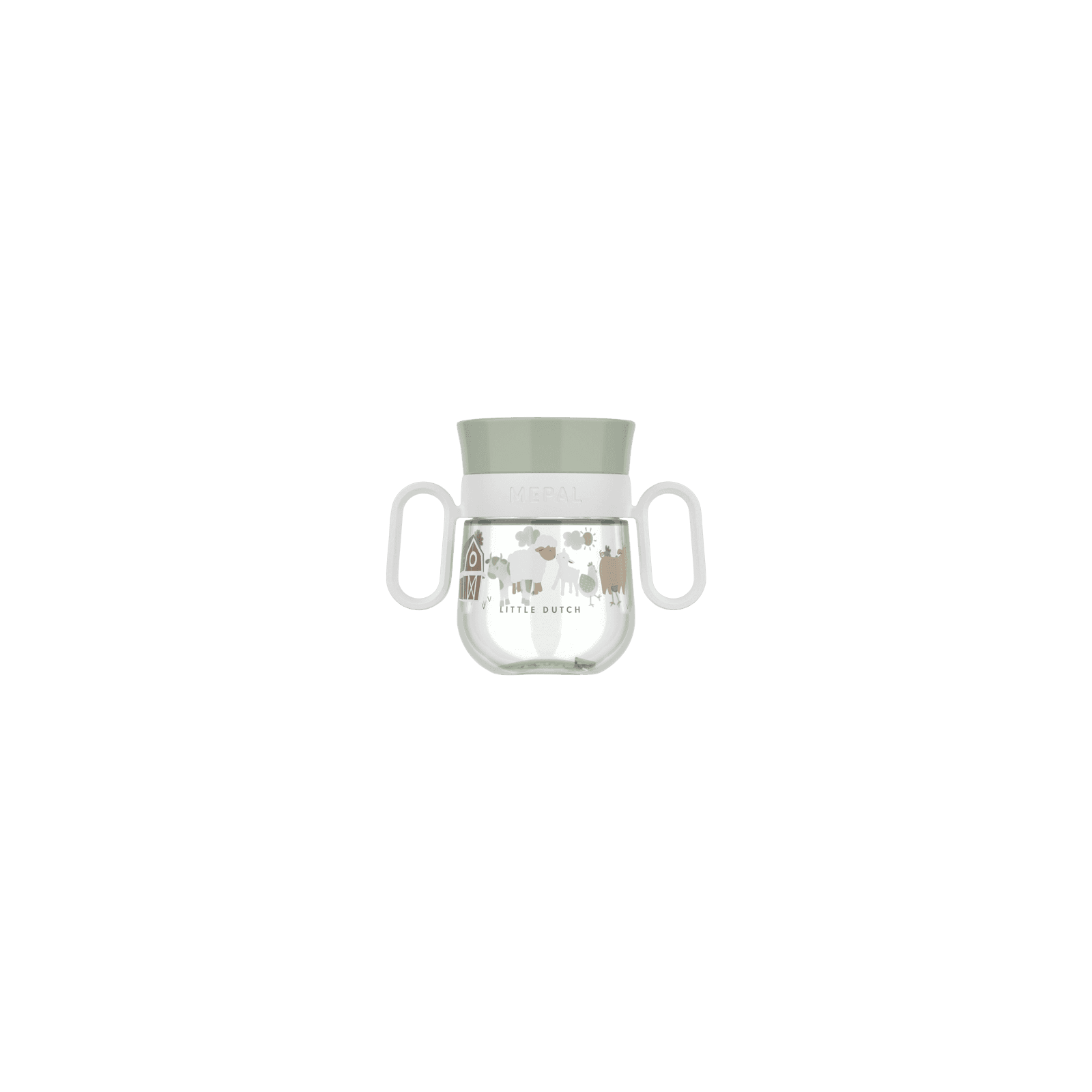 Þessi bolli er hannaður fyrir lítil börn sem eru að læra að drekka sjálf. Barnið getur drukkið allan hringinn á bollanum, og gegnsætt lokið stýrir rennslinu svo að vökvinn komi ekki allur í einu. Bollinn lokast mjög þétt og kemur í veg fyrir að vökvi leki, jafnvel þegar hann lendir á hvolfi.