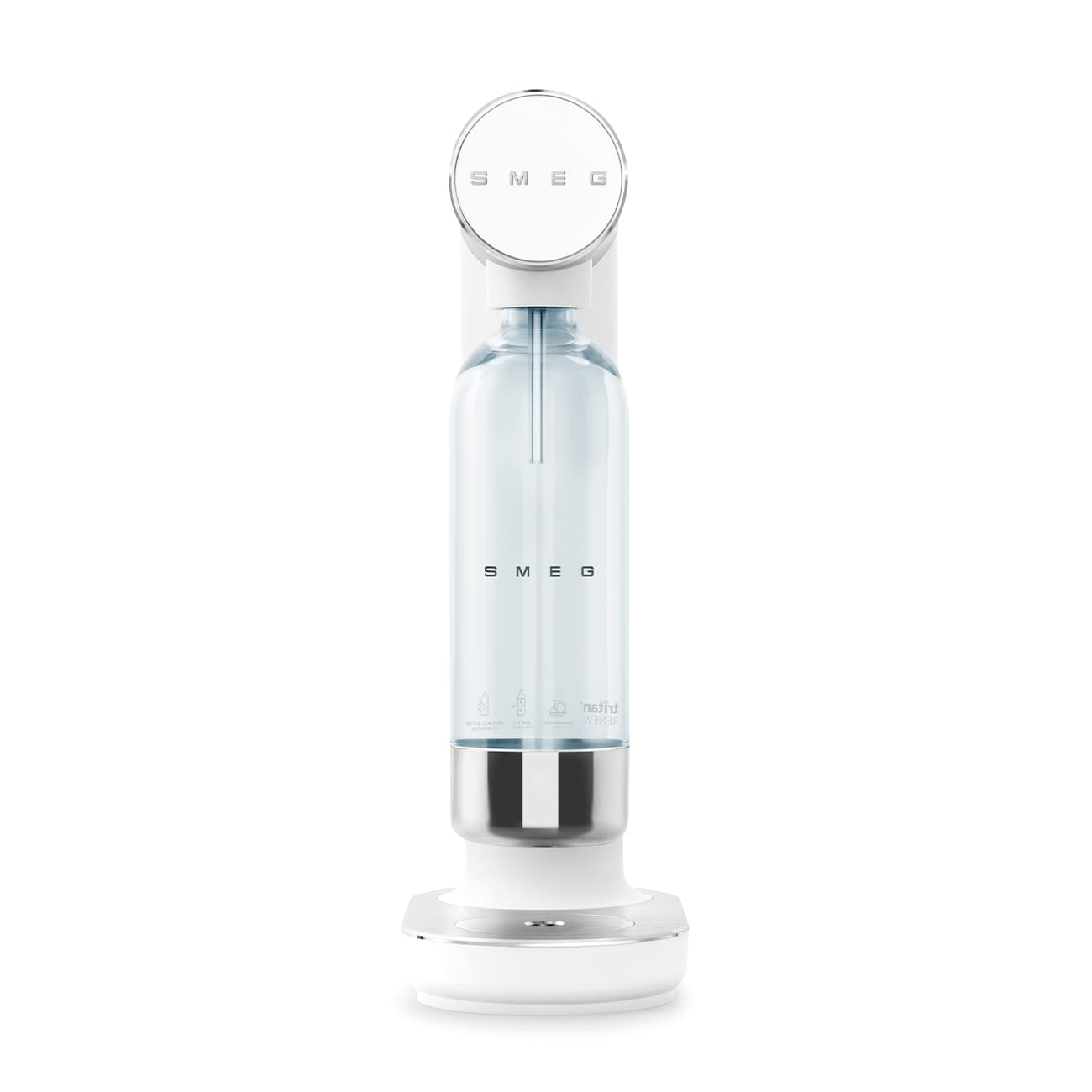 Transform your kitchen with this elegant non-electric Smeg water carbonator. Perfect for making sparkling water at home, it combines style and functionality with an intuitive knob and a Tritan™ Renew plastic bottle, BPA-free and dishwasher-safe.