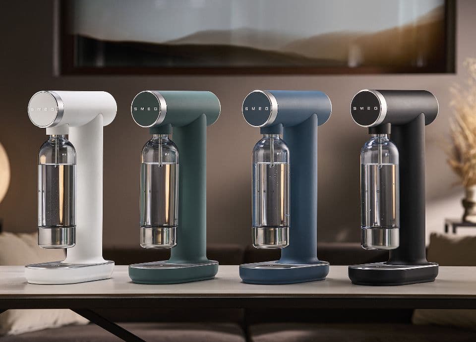 Transform your kitchen with this elegant non-electric Smeg water carbonator. Perfect for making sparkling water at home, it combines style and functionality with an intuitive knob and a Tritan™ Renew plastic bottle, BPA-free and dishwasher-safe.