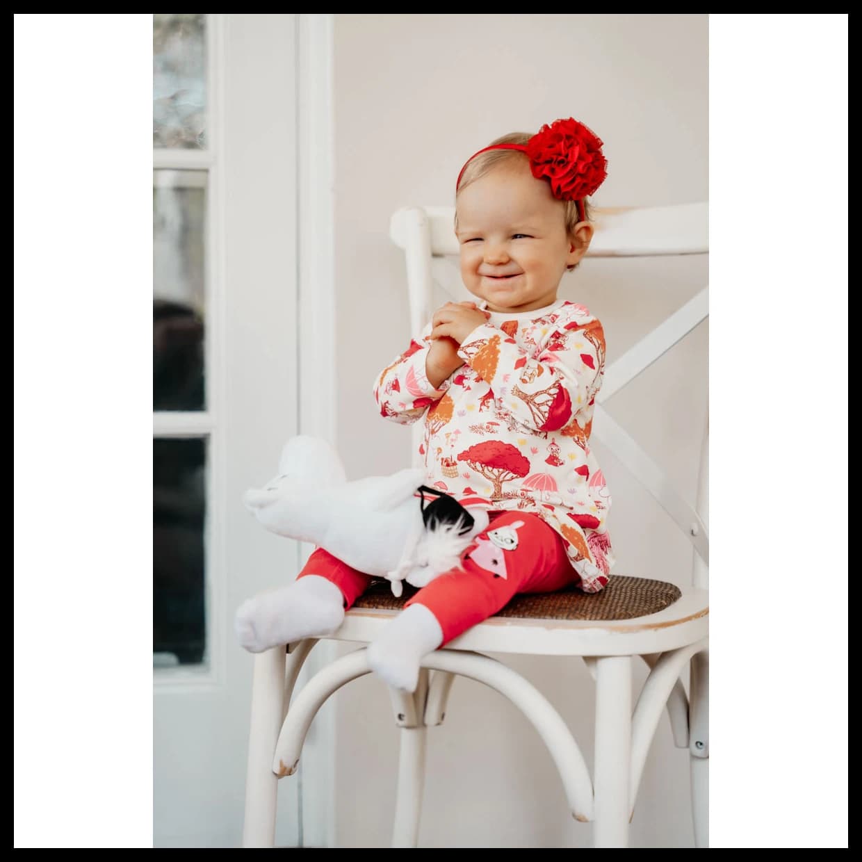 Krúttlegar rauðar leggings skreyttar Míu litlu.