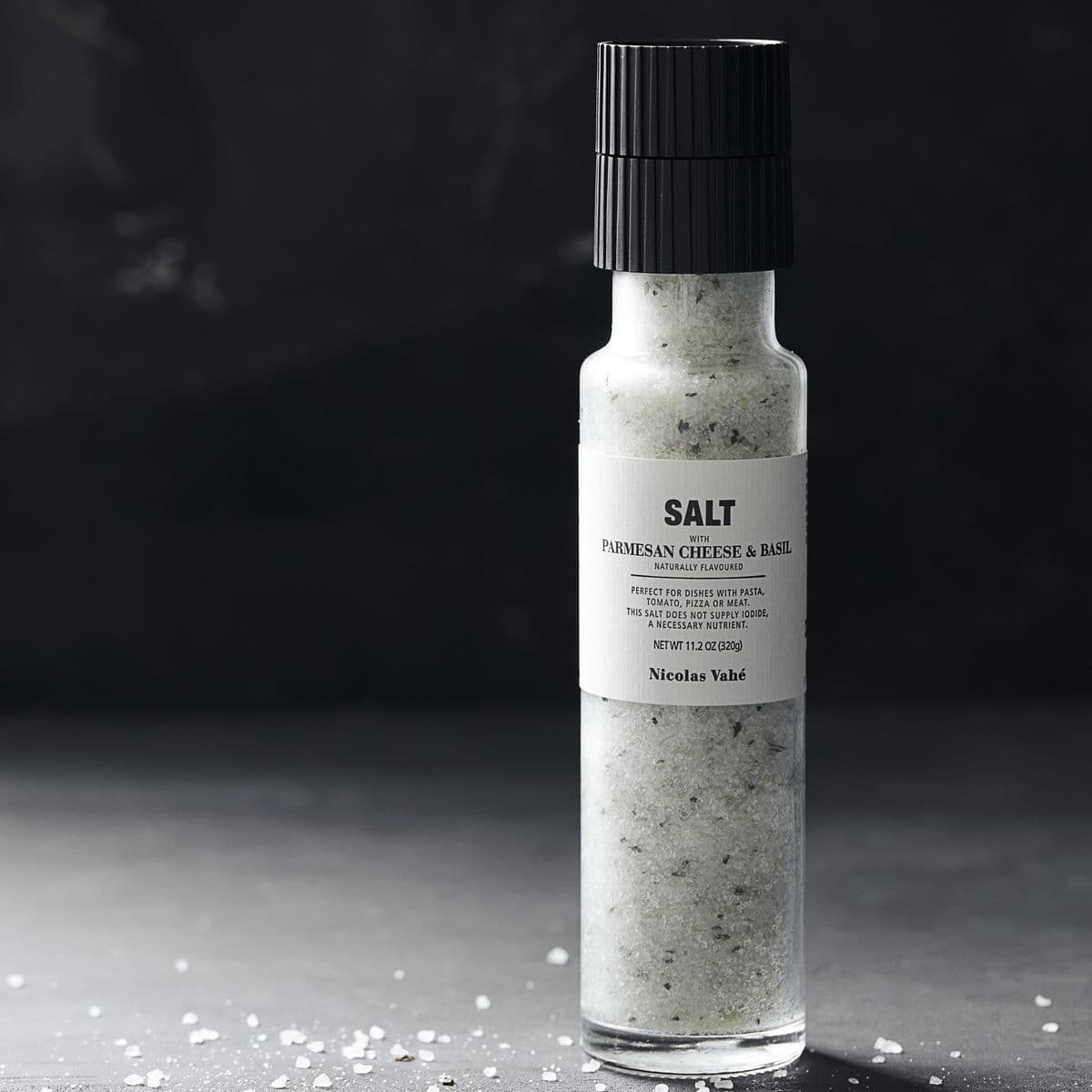 Sjávarsalt með parmesanosti og basilíku sem er algjörlega ómissandi í matargerðina. Fullkomið á pastaréttinn, risotto og pizzu. Notaðu saltið frá Nicolas Vahé á salötin þín og steiktar kartöflur. Kvörnin er úr keramiki og gefur þér fínmalað krydd.