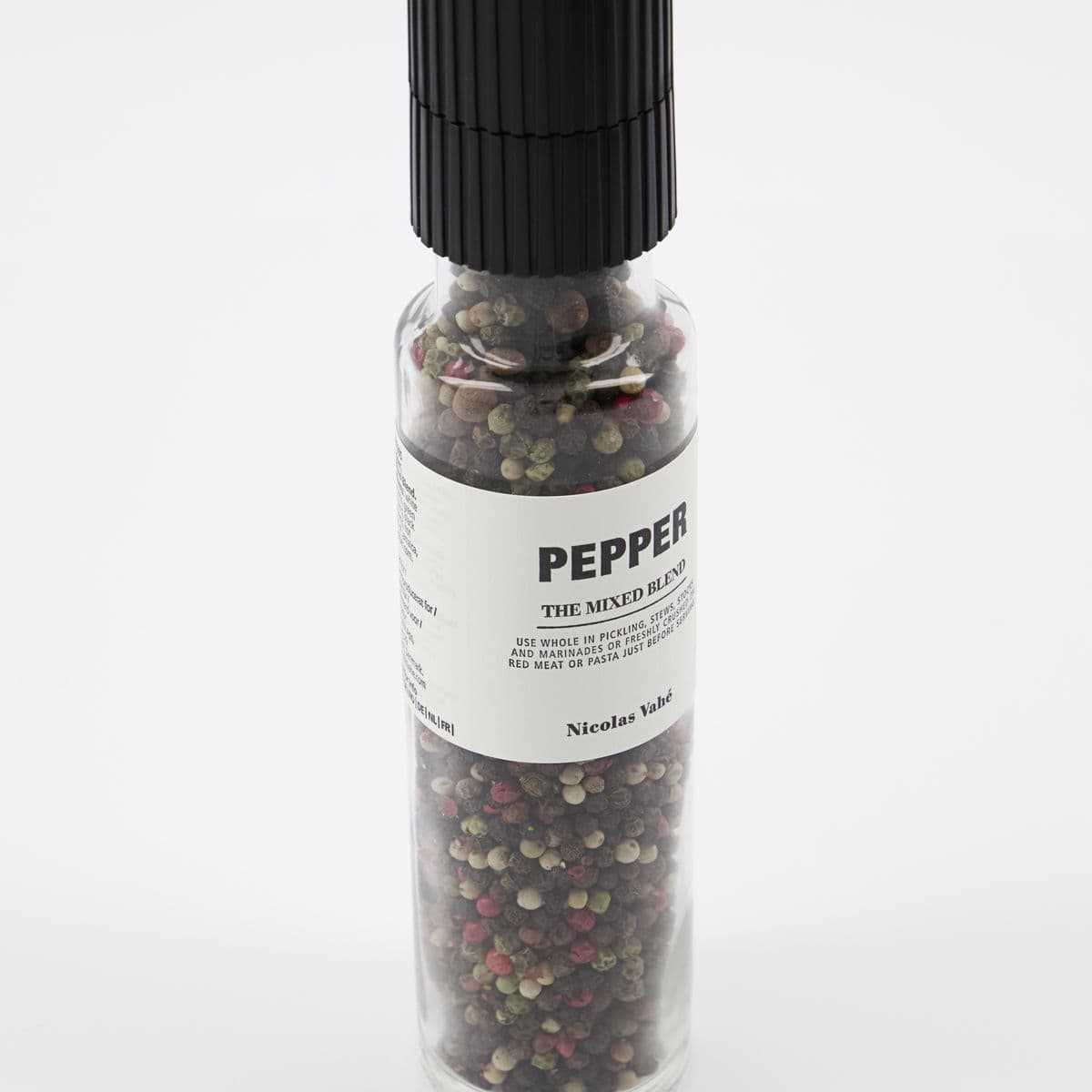 Klassísk piparblanda frá Nicolas Vahé með fimm mismunandi tegundum af pipar: hvítum, rauðum, grænum, bleikum og svörtum piparkornum. Kvörnin er úr keramiki og gefur þér fínmalað krydd.