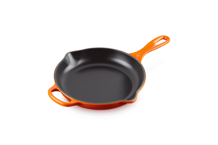 Með kaupum á steypujárnspönnu frá Le Creuset tryggir þú þér vöru með langa sögu og mikil gæði. Eftir áratuga reynslu hefur það sýnt sig að fáar pönnur komast með tærnar þar sem steypujárn hefur hælana. Hitinn dreyfist mjög jafnt og gefur það því jafna og góða eldun.