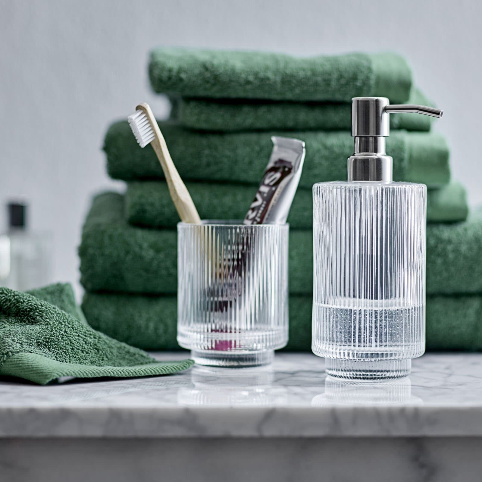 Clarity sápupumpan sameinar einfaldleika og stíl. Hún er úr glæru, riffluðum gleri með fíngerðu bylgjumynstri sem gefur baðherberginu fallegt og nútímalegt yfirbragð.