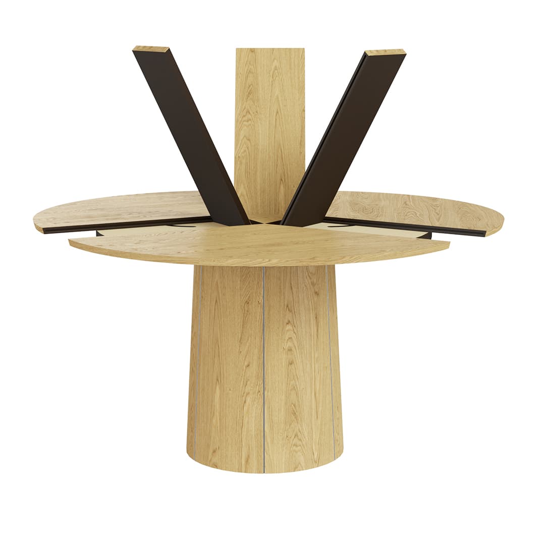 Borð #33 frá Skovby er útbúið einstökum stækkunarútbúnaði.  Með því að snúa litlu handfangi, sem finna má undir borðplötunni, þá stækkast borðið og upp úr borðfætinu koma þrjár auka stækkanir.  Þegar borðið er svo minnkað aftur, þá ýtir maður létt ofan á stækkunarplöturnar og þær fara aftur ofan í fótinn.