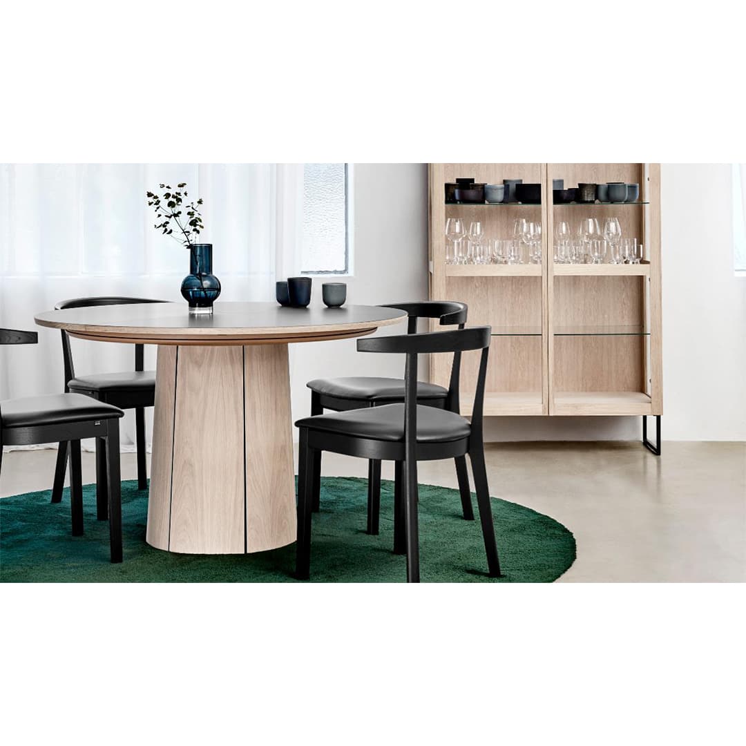 Borð #33 frá Skovby er útbúið einstökum stækkunarútbúnaði.  Með því að snúa litlu handfangi, sem finna má undir borðplötunni, þá stækkast borðið og upp úr borðfætinu koma þrjár auka stækkanir.  Þegar borðið er svo minnkað aftur, þá ýtir maður létt ofan á stækkunarplöturnar og þær fara aftur ofan í fótinn.
