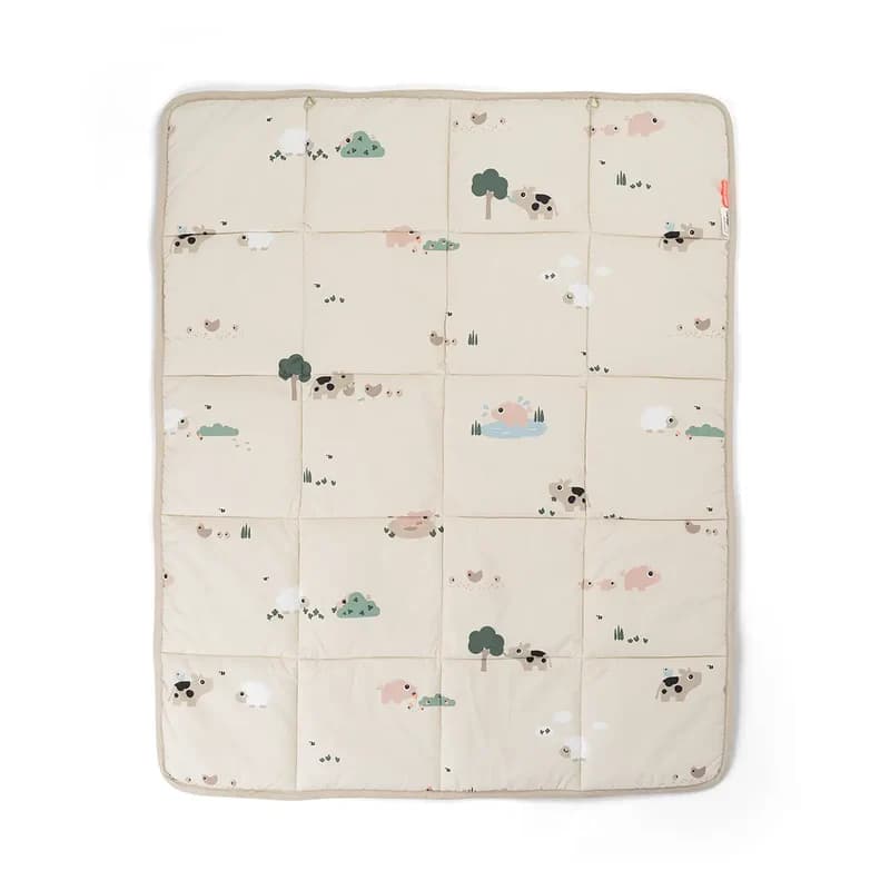 Stuðkanturinn er snúanlegur, með fallegu dýramynstri með vinunum Dotti, Pigee og Sheepy öðrum megin og í fallegum sand lit hinum megin.