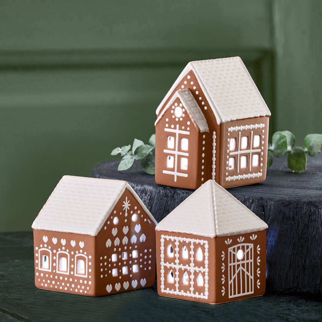 Þetta kertahús er sérstakt í Urbania línunni, en það minnir á piparkökuhús og er með innbyggðu LED ljósi.