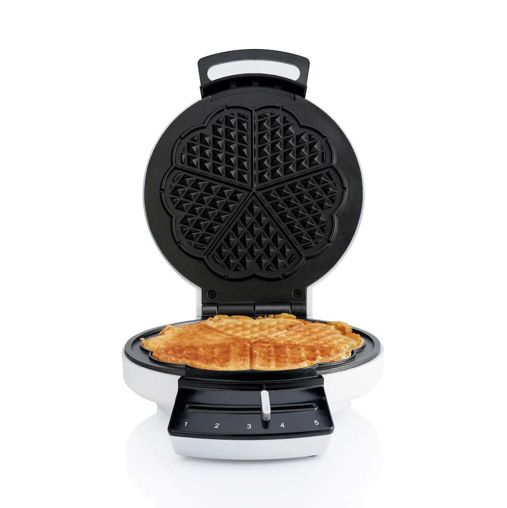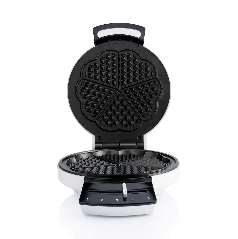 Vöffluplatan er 16 cm í þvermál og bakar 5 vöffluhjörtu í einu.