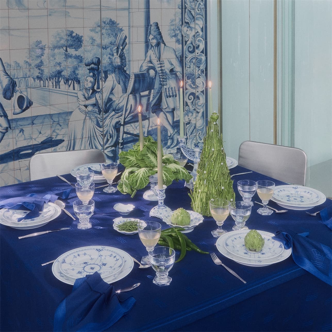 Waves dúkurinn frá Royal Copenhagen er fáguð viðbót við borðhaldið. Waves dúkurinn bætir við glæsileika á borðið með fínlegu mynstri af þremur öldum og kórónum sem vísar til arfleifðar Royal Copenhagen. Fullkomin viðbót við postulínssafnið þitt og gefur kvöldverðinum sérstakan svip.