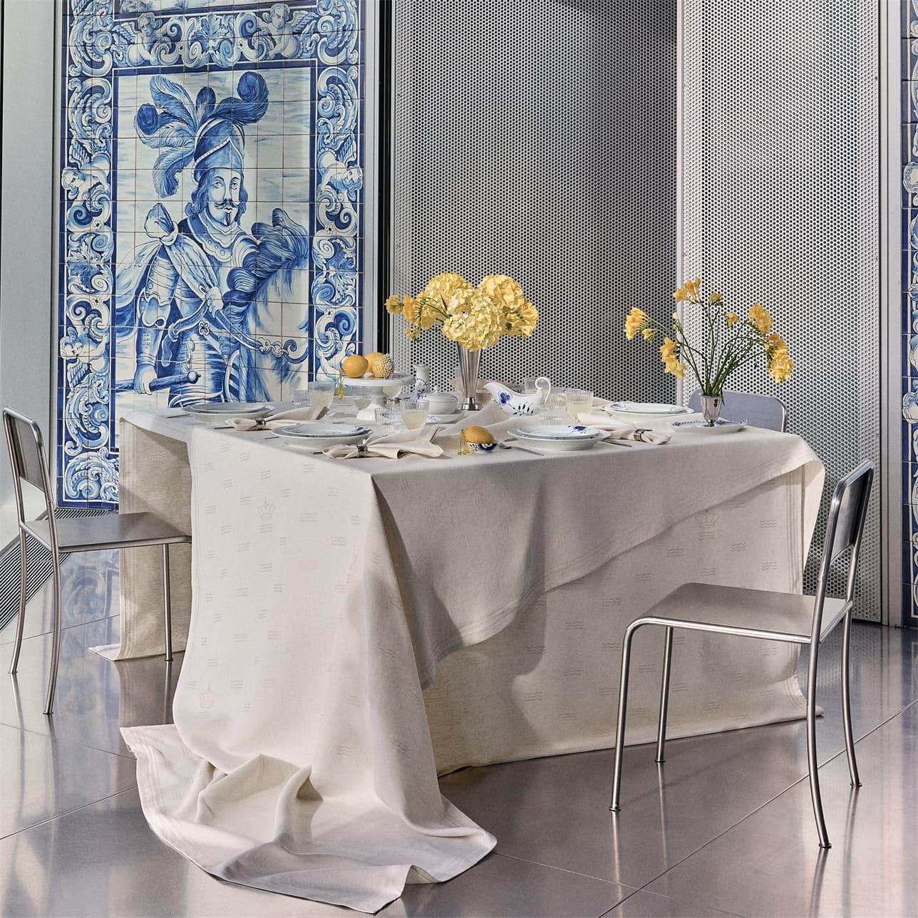Waves dúkurinn frá Royal Copenhagen er fáguð viðbót við borðhaldið. Waves dúkurinn bætir við glæsileika á borðið með fínlegu mynstri af þremur öldum og kórónum sem vísar til arfleifðar Royal Copenhagen. Fullkomin viðbót við postulínssafnið þitt og gefur kvöldverðinum sérstakan svip.
